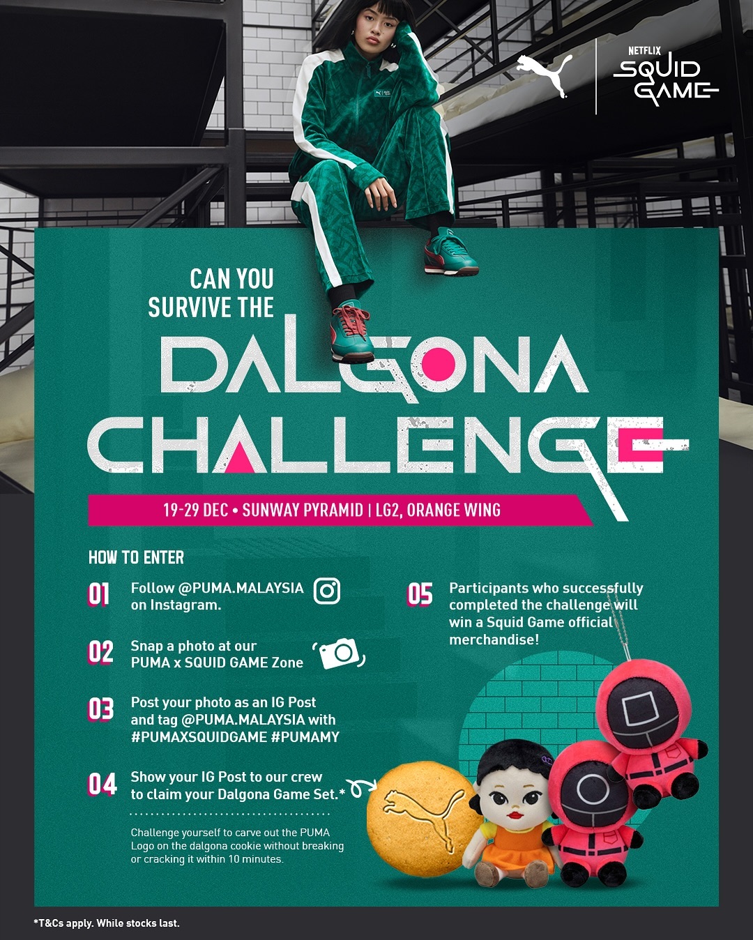 To mark the launch of the PUMA x Squid Game collection, we brought the series to life with a mid-tier pop-up at Sunway Pyramid, supported by KOL amplification, media buzz, social content creation, and an immersive Dalgona Challenge for consumers.